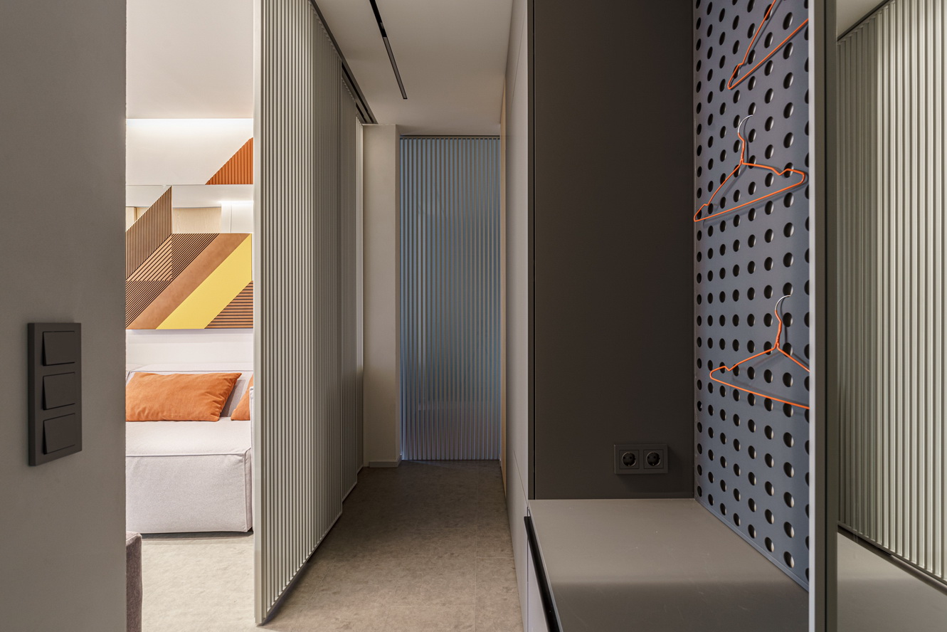 Дизайнеры Диана Карнаухова и Виктория Лукьянова продумали до мелочей буквально всё. На полу — кварцевый ламинат из коллекции Fargo Stone Горный Хрусталь JC 11013. На полу нейтрального цвета создали интерьер из терракотово-серой палитры с добавлением сиреневого.